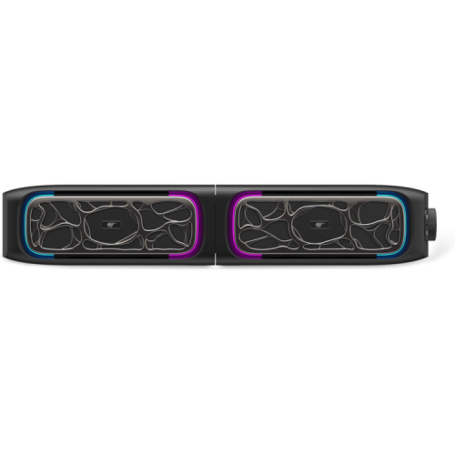 Підключення до акустичної системи можливе як через дротовий вхід AUX (3.5 мм), так і за допомогою Bluetooth 5.0, що гарантує стабільність та швидкість з'єднання з вашими пристроями. Це дозволяє використовувати колонки з різними джерелами звуку: від смартфонів до телевізорів, забезпечуючи універсальність використання. Вхід для USB забезпечує живлення та активує яскраве RGB підсвічування, яке додає додаткових візуальних ефектів під час гри або перегляду фільмів, створюючи атмосферу, що занурює вас у новий світ відчуттів.