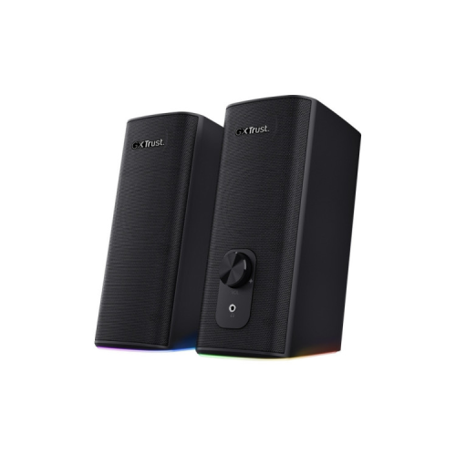 Trust GXT 612 Cetic — компактна акустична система формату 2.0. Виконана у лаконічному дизайні, на 76% із переробленого пластику, але прикрашена світлодіодним підсвічуванням із сенсорним керуванням. Завдяки піковій потужності 18 Вт ви відчуєте себе в першому ряду на концерті, прямо посеред вашої улюбленої гри або на місці зйомок наступного великого блокбастера.