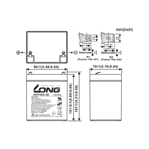 Характеристики Батарея до ДБЖ Long 12В 5Ач (WPS5-12) (WPS5-12)