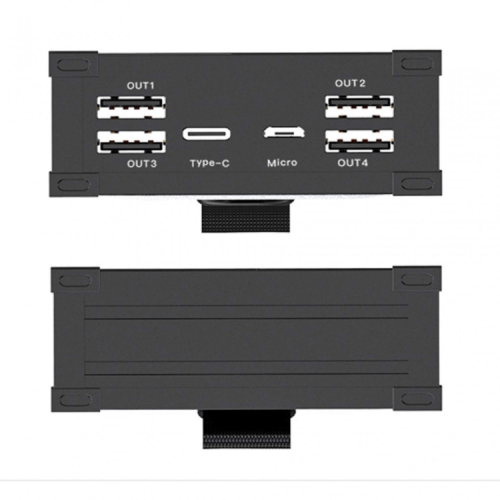 Внешний аккумулятор оснащен 6 портами.