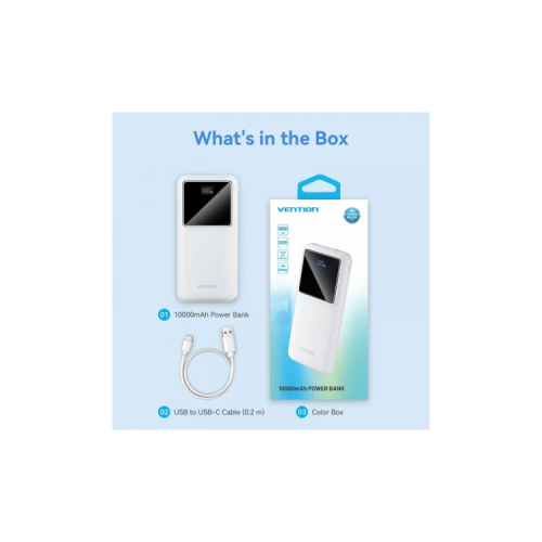 Универсальная мобильная батарея емкостью 10000 мАч Vention 10000mAh 22.5W (FHKW0) поможет быстро и безопасно зарядить смартфоны, аккумуляторы камер, настольных ламп, небольших вентиляторов и другие USB-устройства.