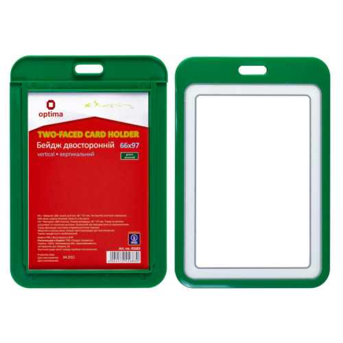 Бейдж Optima преміальний вертикальний 66х97 мм двосторонній, зелений (O45683) Бейдж Optima преміальний вертикальний 66х97 мм двосторонній, зелений (O45683) Бейдж Optima преміальний вертикальний 66х97 мм двосторонній, зелений (O45683)