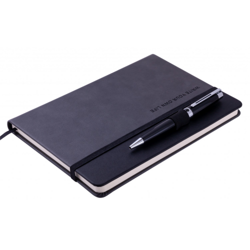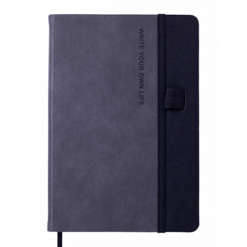 Особливості: мікс фактур штучної шкіри на лицьовій стороні обкладинки, поздовжня гумка для фіксації блокноту в закритому стані, петелька-гумка для ручки, мотивуюче тиснення на лицьовій стороні обкладинки, можливість корпоративного брендування.