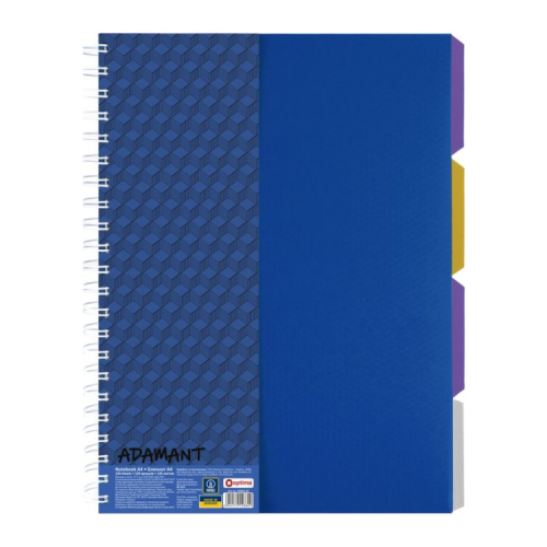 Характеристики Блокнот Optima A4 Adamant пластикова обкладинка, з розділювачами та перфорацією, 120 аркушів, клітинка синій (O20843-02)