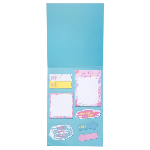 Набір паперу з липким шаром у картонному планшеті для використання в школі, офісі, вдома. У коплекті 8 видів стікерів разого розміру і дизайнів. Стікери з клейовим шаром, завдяки чому надійно кріпляться на гладкій поверхні. Кількість аркушів кожного дизайну - 20.