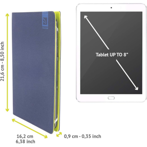 Універсальних чохол Tucano Vento для планшетів з діагоналлю від 7 до 8 дюймів. Передня кришка повністю захищає екран по всій площі пристрою. Задня панель чохла перетворюється в практичну підставку з різними кутами нахилу. Практичний клапан складається для легкого доступу доосновная камери планшета.