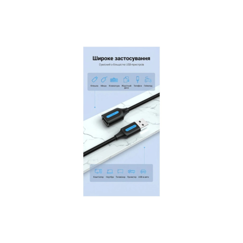 Опис Дата кабель USB 2.0 AM/AF 0.5m black Vention (CBIBD)