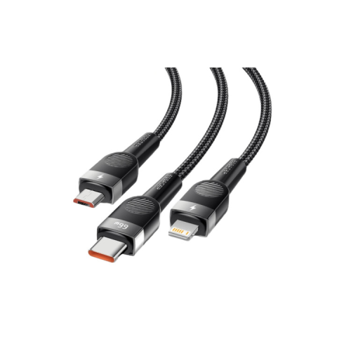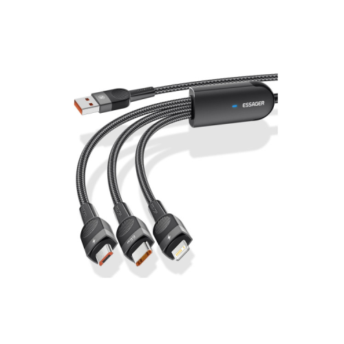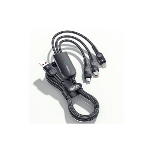Опис Дата кабель USB 2.0 AM to Lightning + Micro 5P + Type-C 1.2m 66W black Essager (EXCMTL-XJ01)
