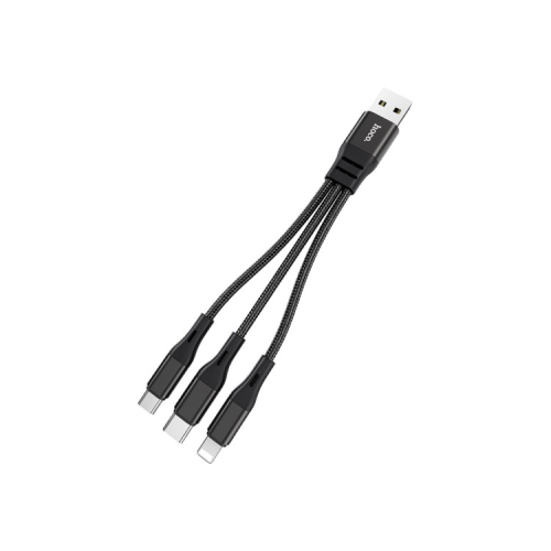 Характеристики Дата кабель USB 2.0 AM to Lightning + Micro 5P + USB-C 0.25m 2.4A nylon X47 black HOCO (6931474727398)