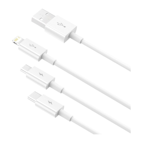 Опис Дата кабель USB 2.0 AM to Lightning + Micro 5P + USB-C 1.5m 3.5A white Baseus (CAMLTYS-02)