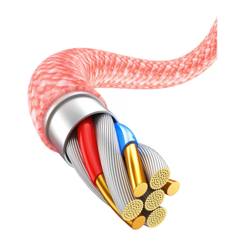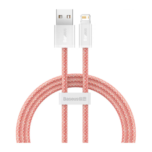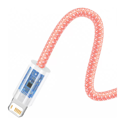 Кабель Lightning от бренда Baseus. Доступный в ярком цвете, поэтому будет отлично сочетаться с другими аксессуарами гаджетов.