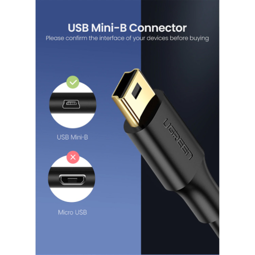 UGREEN US132 - це класичний кабель USB-A → Mini USB 5-pin, що ідеально підходить для зарядки старих гаджетів, передачі фото з камери або підключення плеєра до ПК. Надійний, гнучкий і довговічний — він упорається із повсякденними завданнями без зайвих складнощів.