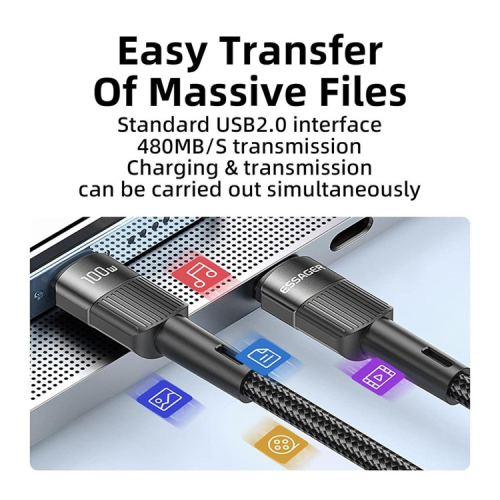 Кабель Essager має вбудований захист, який усуває перегрів та перевантаження. Він також забезпечує не менш швидку передачу даних зі швидкістю 480 Мбіт/с. Ідеально сумісний з будь-яким пристроєм USB-C.