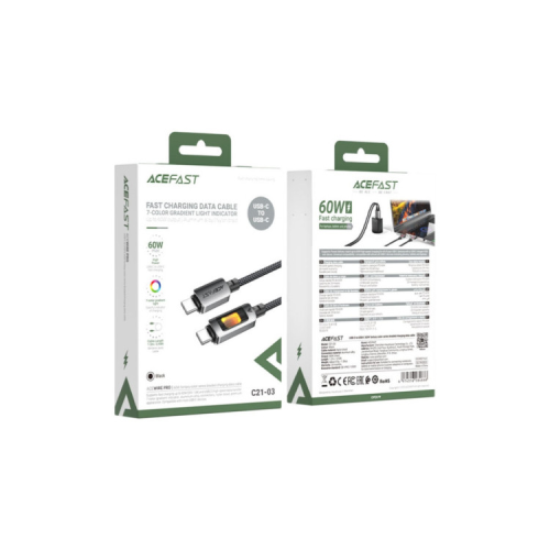 Опис Дата кабель USB-C to USB-C 1.2m 60W black Acefast (6974316284666)