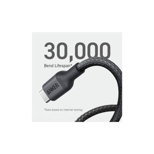 46% зовнішнього обплетення кабелю виготовлено з нейлону на біологічній основі, а 34% корпусу роз'єму виготовлено з використанням інших матеріалів на біологічній основі. Використання біоматеріалів у наших кабелях дозволяє нам скоротити використання пластику на нафтовій основі, такого як TPE.