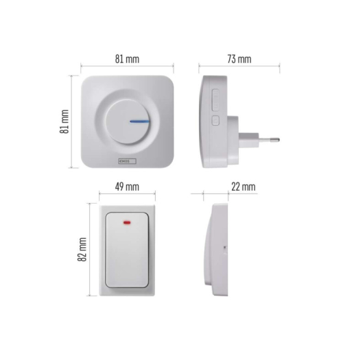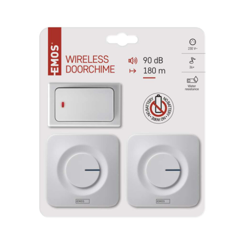 Опис Дверний дзвінок бездротовий P5731 220В 2 приймачі (180м) EMOS (P5731)