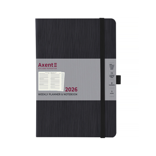 Описание Еженедельник Axent датированный 2026 Grand Lines 195х255, черный (8531-26-01-A)