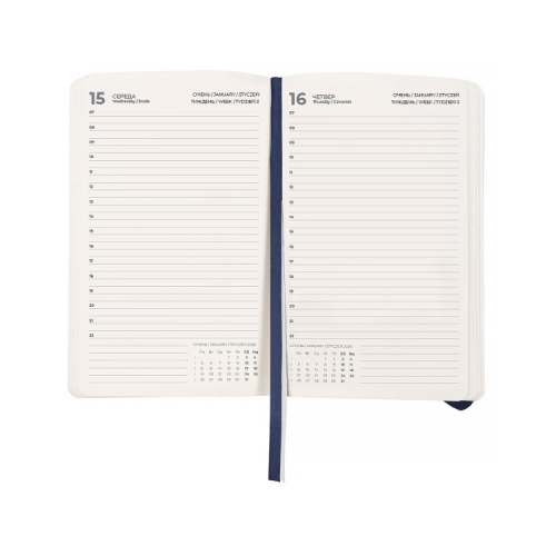 Твердый переплет помогает сохранить аккуратный и презентабельный вид в течение длительного времени. Качественная кремовая бумага плотностью 80 г/м2 хорошо впитывает чернила и обеспечивает комфортное письмо. Удобно делать записи, чертить и рисовать. Ежедневник имеет датированный блок в линию на каждый день.