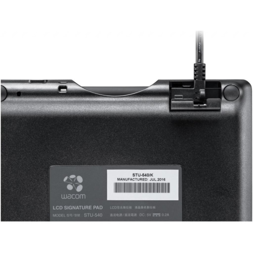 Перо Wacom можно присоединить шнуром к планшету, чтобы оно не потерялось. STU-540 создан для работы в местах с высоким скоплением людей, например на прилавках магазинов и в системах контроля, но при этом он отличается компактной конструкцией и надежностью, что позволяет использовать его где угодно.
