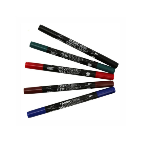 Маркер д/св тканин, двосторонній, 1-2мм, 0,75мм, (колір), Fabric ball&Brush, Marvy – двосторонній: з одного боку з кистю 1-2мм, з іншого - з тонким накінечником 0,5мм, містять безкислотне пігментне чорнило. Призначені для маркування, малювання та письма на більшості світлих тканин (особливо на бавовні), також підходять для паперових робіт.Кольорова гама: чорний, червоний, синій, зелений, жовтий, коричневий.Основні характеристики: двосторонні з кистю і тонким накінечником; безкислотні, не токсичні; перманентні, пігментні, швидковисихаючі; не вимагають фіксації праскою; при пранні не линяють (вимагають делікатних режимів машинного прання до 40 градусів); пишуть практично на всіх типах тканин.Спосіб використання. Перед початком роботи привести в робочий стан: струсити, натиснути декілька разів на стержень, доки фарба не просочиться на ньому. Після закінчення роботи щільно закрити ковпачок для уникнення пересихання чорнил.Умови зберігання. Маркери не висихають впродовж 3-хроків. Транспортування можливе при -10 до +25. Зберігати маркери рекомендується горизонтально.