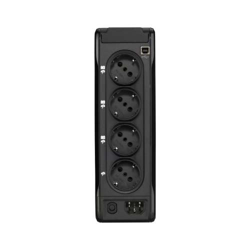 Завдяки наявності 4 Euro-розеток (Schuko), ви можете легко підключити декілька пристроїв одночасно, забезпечуючи їх надійне живлення навіть під час відсутності електрики. Крім того, інтерфейс підключення USB дозволяє з легкістю керувати UPS та стежити за його станом через комп'ютер, що додає зручності у використанні.