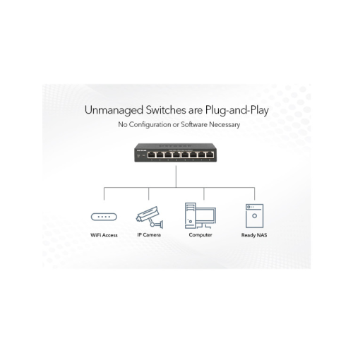 Неуправляемые коммутаторы NETGEAR серии GS3xxPP Gigabit Ethernet с поддержкой технологии PoE / PoE+ помогут создать простую, надежную и доступную сеть для дома и небольшого офиса с возможностью подключения PoE-устройств. С помощью этих легко подключаемых и автоматически настраиваемых неуправляемых Plug-and-Play коммутаторов вы можете легко расширить свою сеть, мгновенно подключив к нескольким и более устройствам.