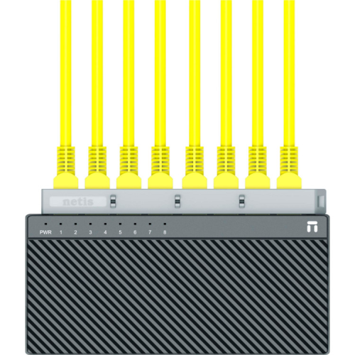 Комутатор оснащений вісьмома портами RJ-45 зі швидкістю 10/100/1000 Мбіт/с. Функції автоузгодження та авто MDI/MDIX дозволяють автоматично визначати тип з'єднання, усуваючи необхідність у використанні перехресних кабелів.