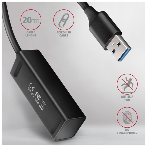 Описание Концентратор AXAGON USB 3.1 to 4xUSB 3.0 0.2m black (HUE-M1A)