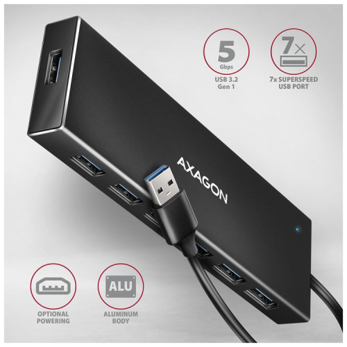 Відгуки Концентратор AXAGON USB 3.1 to 7xUSB 3.0 black (HUE-F7A)