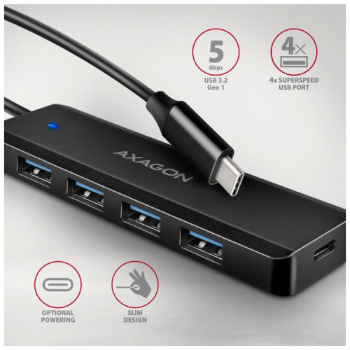 Опис Концентратор AXAGON USB-C to 4xUSB 3.0 black (HUE-C1C)