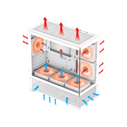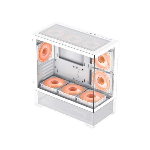 Цей корпус має багато гнучкості, зручної для встановлення компонентів: знімні 5 боків, повний огляд від скла до скла; Просторий корпус ПК із системою Easy Cable Management, ущільнювальна пластина на верхньому кронштейні радіатора запобігає витоку тиску під час встановлення радіатора менше 360/вентиляторів 3x120 мм у верхній частині.