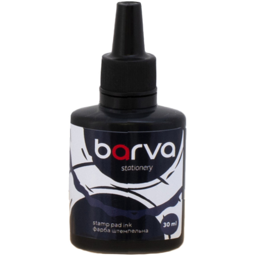 Barva » призначена для заправки штампів та печаток ручних та автоматичних, датерів, нумераторів. Штемпельна фарба на водяній основі. Фарба для печаток та штампів випускається в економній ємності 30 мл. Для додаткової зручності кожен флакон має дозатор.