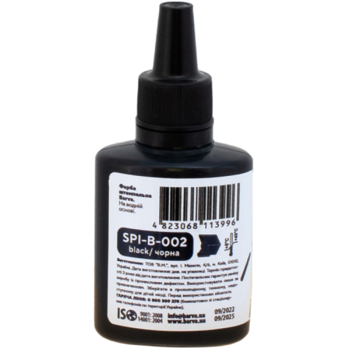 Характеристики Фарба штемпельна Barva 30 мл упаковка 12 шт, чорна (SPI-B-002-12)