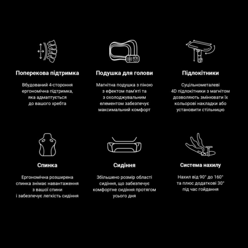 Новая сложная внутренняя система поддержки поясницы. Внутрь и наружу, вверх и вниз, контролируемый 2 боковыми ручками, которые обеспечивают нужное количество жесткости или давления на вашу спину в желаемой позе. Встроенная поясничная поддержка выглядит гораздо более естественно, поскольку она выглядит как часть кресла, а не отдельная подушка с ремнем или ее трудно регулировать.