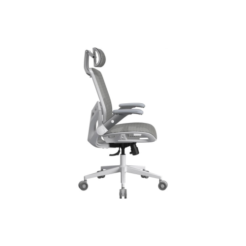 Складывающиеся 2D-подлокотники поддерживают разные положения рук, а подголовник регулируется для индивидуального комфорта.