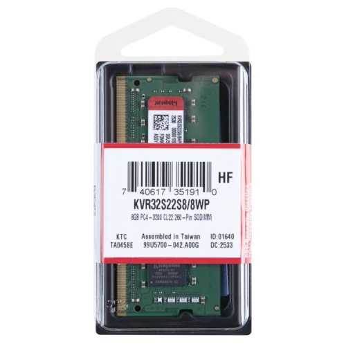 Опис Модуль пам'яті для ноутбука SoDIMM DDR4 8GB 3200 MHz Kingston (KVR32S22S8/8WP)