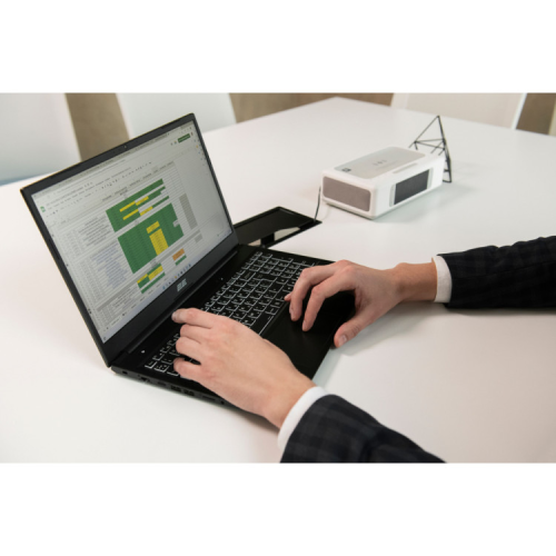 Полноразмерная клавиатура с калькуляторным блоком справа имеет полную украинскую локализацию и белую подсветку. Можно переключать профили энергопотребления: бесшумный, экономный, универсальный и производительный. Батарея увеличенной емкости, которой хватает до 12 часов автономной работы.