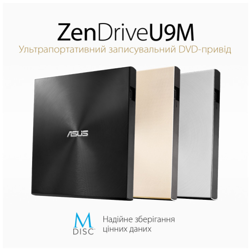 ЗащитаВ отличие от многих других оптических приводов, ASUS ZenDrive U9M является совместимым с носителями формата M-Disc, которые могут хранить записанную на них информацию более тысячи лет, в то время как традиционные жесткие диски и «флешки» гарантированно служат не более десятилетия. Технология M-Disc – идеальное средство архивного хранения особо ценных данных.