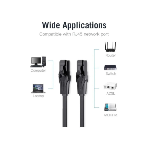 Описание Патч-корд 0.5м, UTP cat 6 RJ-45 black Vention (IBJBD)