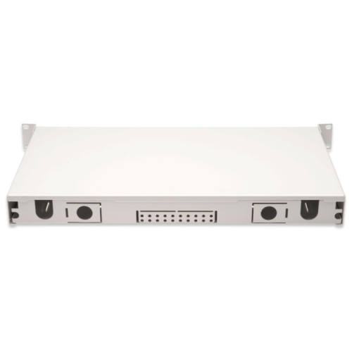 Повністю зібрана патч-панель, пігтейли в касеті, тримачі для обтиску зрощування. Кольорові пігтейли. Адаптери з наконечником із цирконієвої кераміки в полімерному корпусі. Несучий висувний корпус із сталевого листа товщиною 1,0 мм.