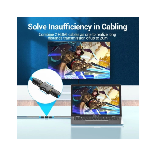 Перехідник Vention HDMI F – HDMI F. Призначений для з'єднання двох кабелів з роз'ємом HDMI 19M.
