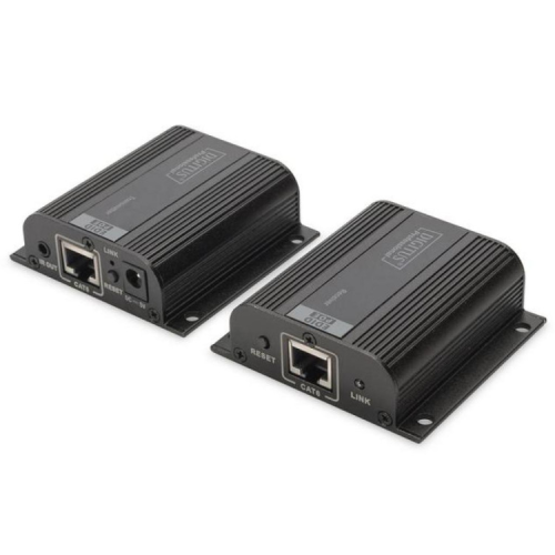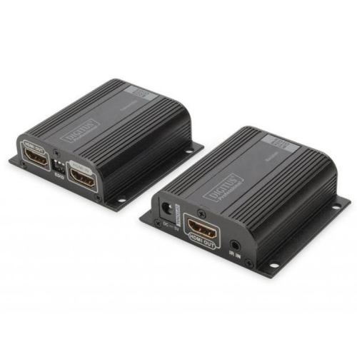 Перехідник HDMI UTP 50m Black DIGITUS (DS-55100-1) - легке і зручне розподіл HDMI сигналів: встановлюйте ваші монітори там, де хочете, без врахування обмежень довжини кабелю HDMI. Кабель збільшує максимальну довжину кабелю HDMI до 50 м з використанням звичайного мережевого кабелю між передавачем і приймачем.