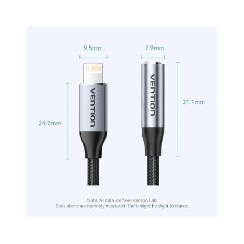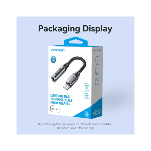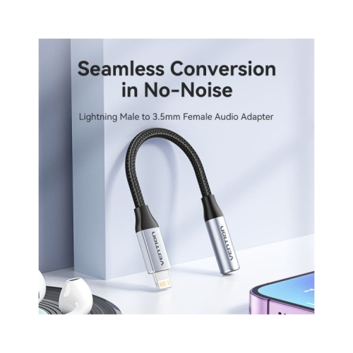 Опис Перехідник Lightning to 3.5mm 0.1m cotton braided aluminum gray Vention (BMBHA)