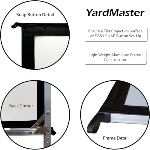 Проекційний екран призначений для мобільних інсталяцій як усередині, так і поза приміщеннями. Він може застосовуватися в шоу-бізнесі, виїзному навчанні або просто за бажання організувати кінотеатр у дворі. Алюмінієва рама складається з труб квадратного перерізу, що забезпечує легкість та міцність. Рама розкладається за лічені хвилини, потім на заклепки кріпиться полотно і приєднуються Т-подібні ніжки.