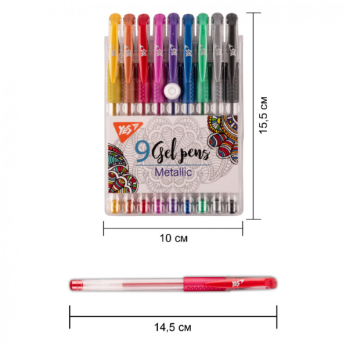 Опис Ручка гелева Yes набір Metallic 9 штук (420433)