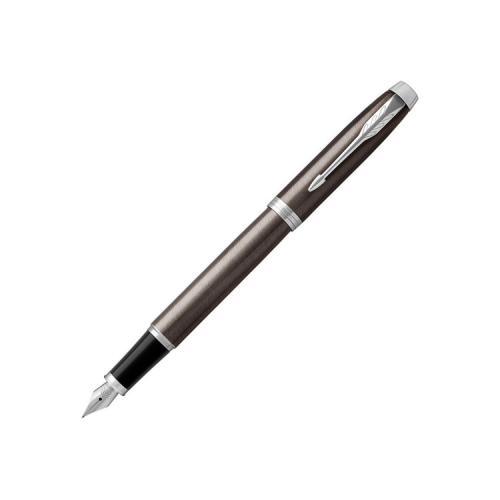 Parker IM Dark Espresso CT FP F (дизайн кофейного цвета с хромированием) – перьевая ручка с тонким стальным пером. Модель из базовой части серии IM. Современный письменный инструмент с латунным корпусом и съемным колпачком. Модель с покрытием коричневым лаком и контрастной серебристой отделкой хромом.