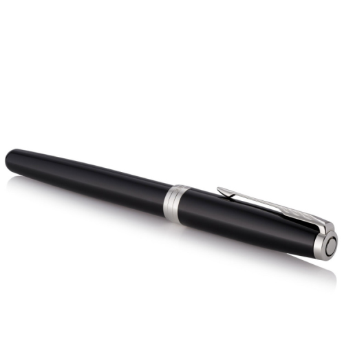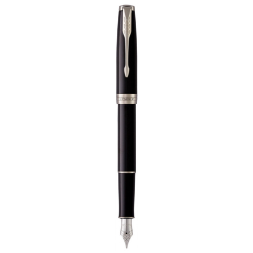 Parker SONNET Black Lacquer CT FP F 1931499 (чорний глянцевий дизайн з паладієвим оздобленням) - перова ручка з тонким сталевим пером. Представлена у найелегантнішій колекції – SONNET. Це винятковий інструмент для письма люкс класу. Преміальний дизайн із ювелірної латуні, щедро покритої гладким чорним лаком. Вся ця пишність доповнена оздобленням з дорогоцінного металу - паладію.