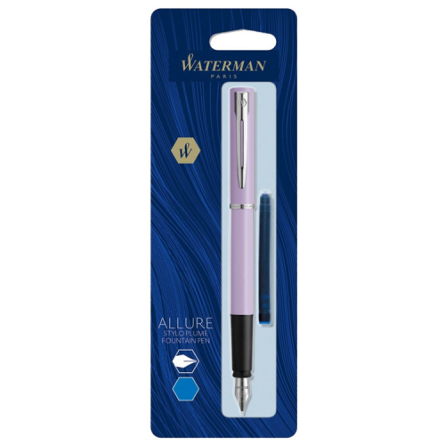 Waterman ALLURE Pastel Purple CT FP F (у блістері) - пастельно-фіолетова перова ручка з тонким сталевим пером. Цікава пропозиція для всіх, хто цінує стриманий французький шик, а поєднання кольорів робить ручку привабливою для жінок.