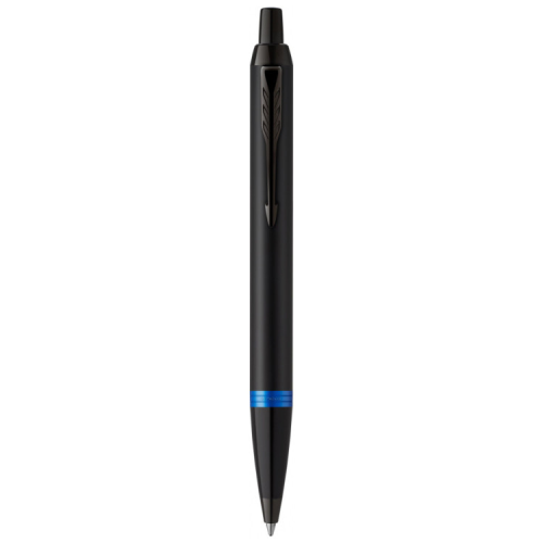 Parker IM Professionals Vibrant Rings Marine Blue BT BP – ефектна кулькова ручка у чорному матовому дизайні з контрастними акцентами синього кольору. Модель представляє лінійку IM Vibrant Rings 2022 року.