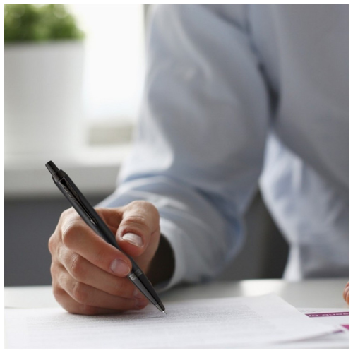 Parker IM Achromatic Black BT BP Тризуб (чорний матовий дизайн з Гербом України та PVD-оздобленням) – елегантна кулькова модель зі спеціального випуску нової колекції IM Achromatic. Найкраща ручка для патріотів і як подарунок до державних та національних свят.
